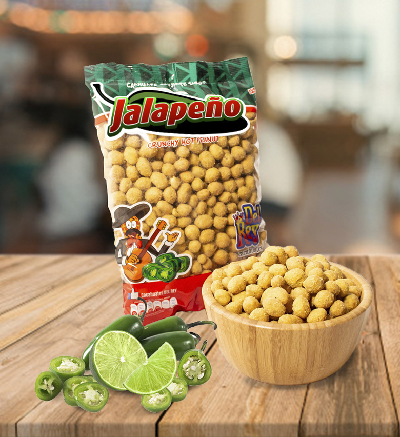 Este delicioso chile picosito forma una parte fundamental de la cocina mexicana, siendo uno de los más conocidos por su extraordinario sabor. En cacahuates “Del Rey” no podíamos desaprovechar la sazón de este emblemático y representativo chile característico de México, combinado con la más suave textura para formar un delicioso cacahuate crujiente con sabor a Jalapeño.